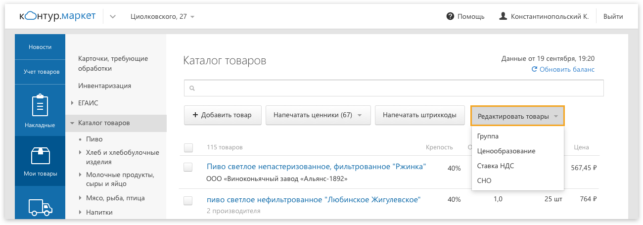 В Контур.Маркете можно редактировать сразу несколько товаров