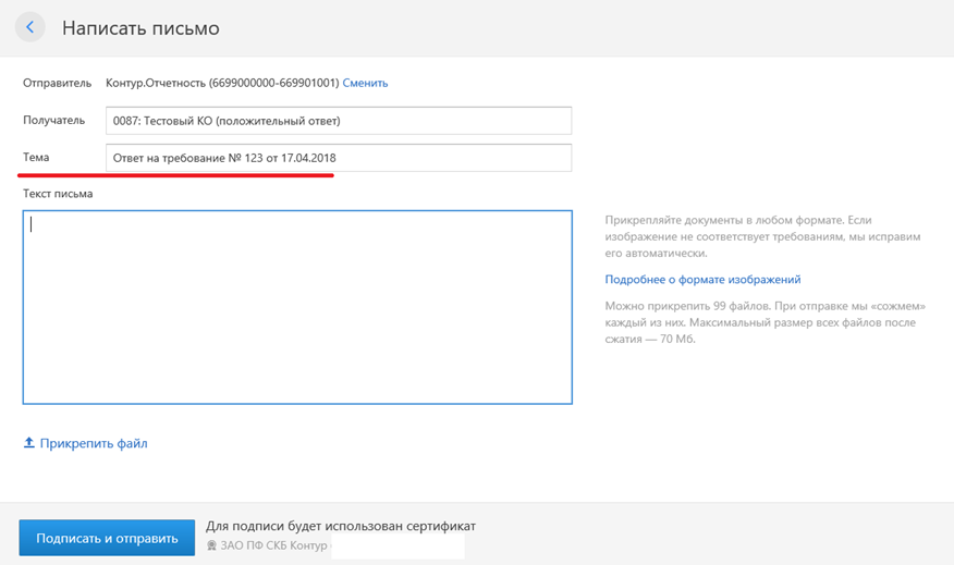 Обратите внимание, что номер требования подставится в тему письма автоматически.